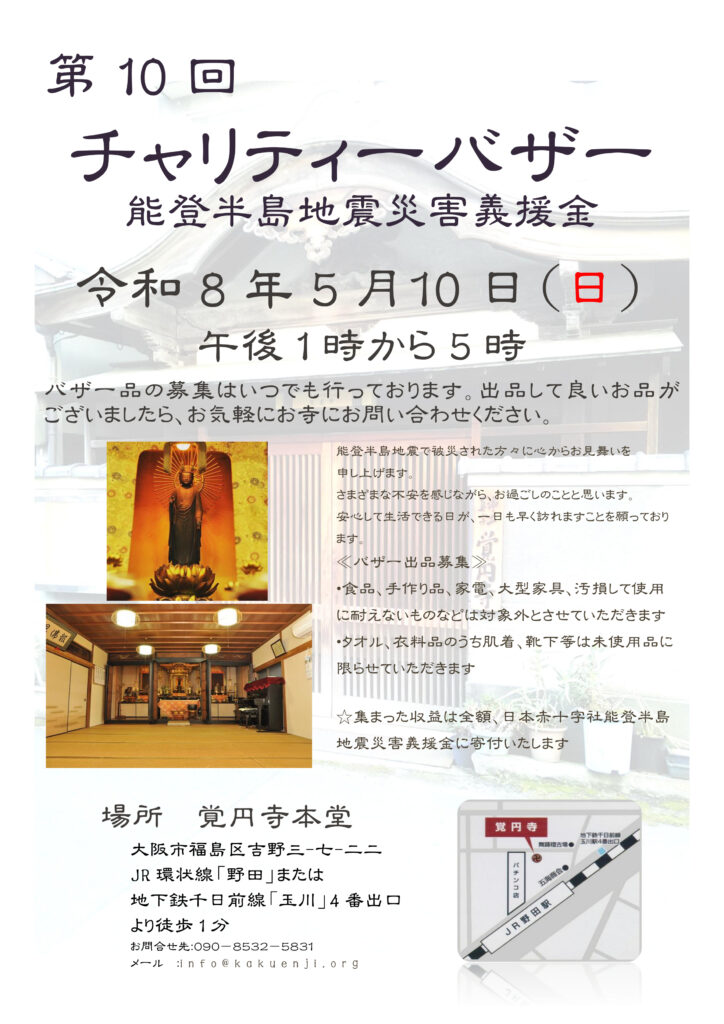 毎回、好評をいただいている覚円寺のチャリティバザー、10回目となりました!